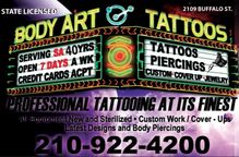 We love our customers who appreciate body art and tattoos, so feel free to visit us during normal business hours to explore our offerings, including ba tattoo and body art tattoos and piercings.